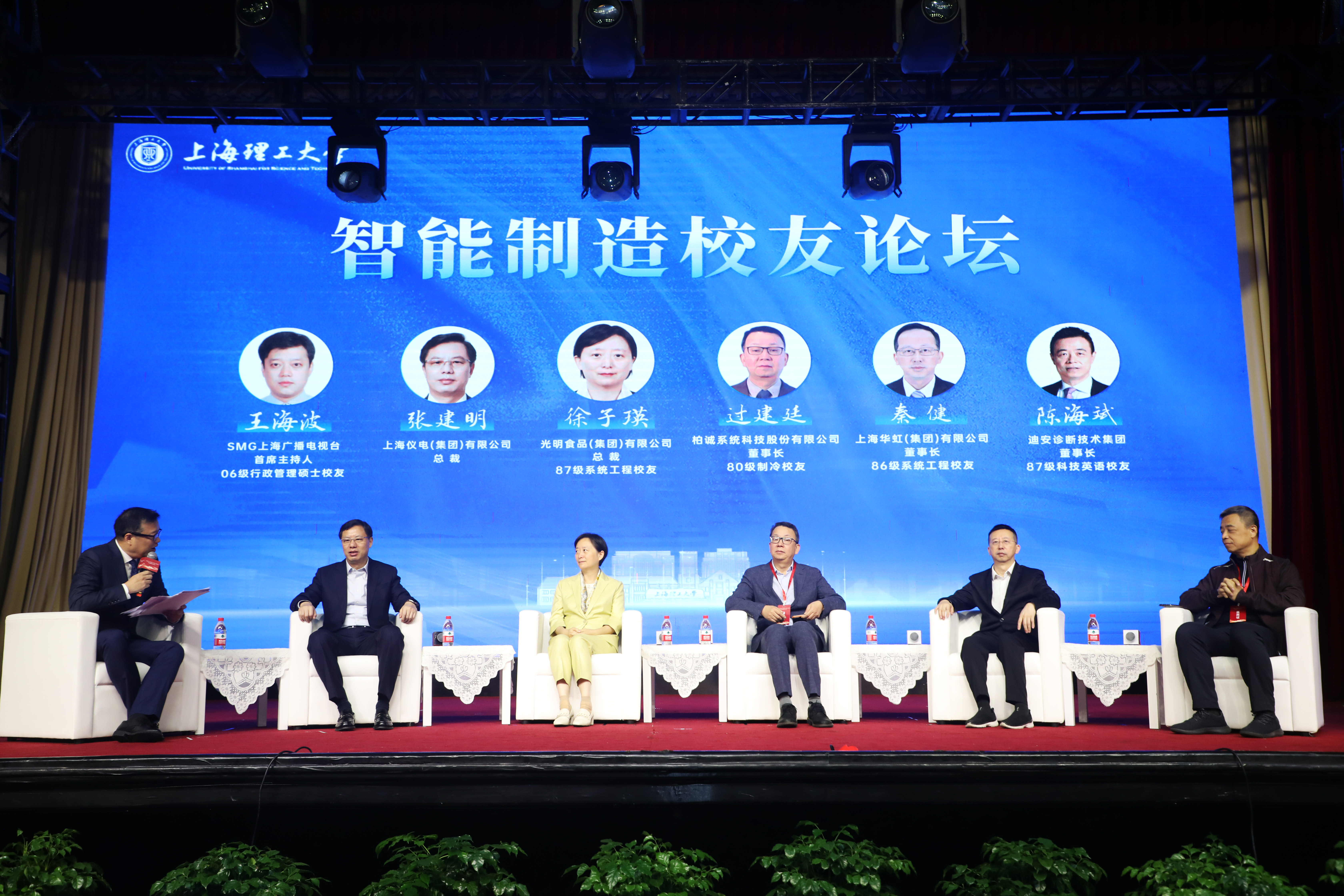 在智能制造校友論壇環(huán)節(jié),SMG上海廣播電視臺首席主持人王海波、柏誠系統(tǒng)科技股份有限公司董事長過建廷、上海華虹(集團(tuán))有限公司董事長秦健、光明食品(集團(tuán))有限公司總裁徐子瑛、迪安診斷技術(shù)集團(tuán)股份有限公司董事長陳海斌、上海儀電(集團(tuán))有限公司總裁張建明等六位校友嘉賓和特邀嘉賓,圍繞智能制造、產(chǎn)業(yè)創(chuàng)新、人才培養(yǎng)等分享真知灼見,彰顯了上海理工大學(xué)作為“制造業(yè)黃埔軍?!钡纳詈竦滋N與使命擔(dān)當(dāng)。