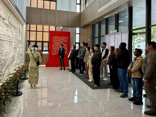 代表團(tuán)一行抵達(dá)寧夏博物館進(jìn)行了實(shí)地參觀,在浩瀚的歷史長(zhǎng)卷與鮮明的紅色印記中,留學(xué)生們系統(tǒng)了解了寧夏獨(dú)特的地域文化、輝煌的發(fā)展成就及其在中國(guó)整體發(fā)展格局中的重要地位。這場(chǎng)深刻的文化“第一課”,不僅增強(qiáng)了學(xué)生們對(duì)中國(guó)多元一體格局的認(rèn)知,更為后續(xù)的交流活動(dòng)筑牢了深厚的人文根基,使他們能夠帶著對(duì)寧夏歷史與現(xiàn)狀的理解,進(jìn)行更深入、更有溫度的對(duì)話。
