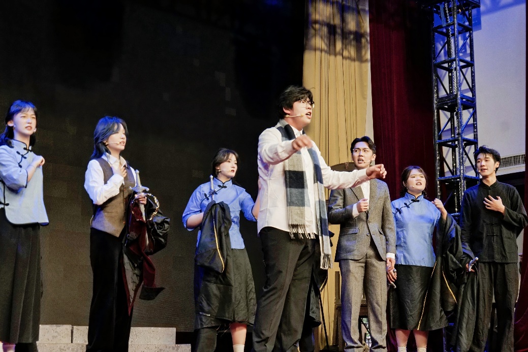 在學(xué)校119周年校慶日的下午15:00和晚上18:30,大師劇《劉湛恩》以兩場(chǎng)高密度演出成為校慶的文化大餐。許多校友特意前來(lái),重溫這場(chǎng)承載著母校記憶的精神盛宴。從2016年首演至今,《劉湛恩》連續(xù)公演十年,已累計(jì)演出23場(chǎng),覆蓋師生、校友及社會(huì)各界人士等觀眾超3萬(wàn)人次。它曾榮獲"上海市大師劇精品文化項(xiàng)目",在全國(guó)大藝展、上海市"匯創(chuàng)青春"、大學(xué)生話劇節(jié)等多項(xiàng)比賽中獲得榮譽(yù)。它不僅是一部劇,更是連接過(guò)去與未來(lái)的精神紐帶,讓愛(ài)國(guó)薪火在上理校園中永遠(yuǎn)傳遞。這或許就是《劉湛恩》十年常演常新的秘密。十年間劇組不斷打磨細(xì)節(jié),2025年版本在臺(tái)詞和服裝道具等舞美上進(jìn)一步提升,從細(xì)節(jié)處還原歷史場(chǎng)景。十年展演不是簡(jiǎn)單的重復(fù),而是一屆屆上理學(xué)子對(duì)愛(ài)國(guó)初心的詮釋,對(duì)大師精神的傳承。
