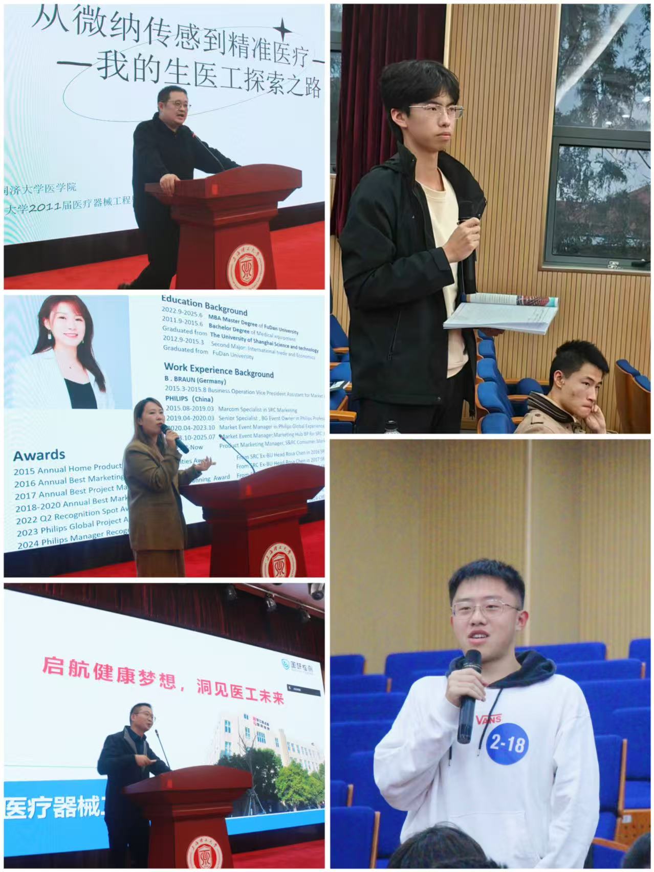 當(dāng)天下午還舉行了“健康啟航班”職業(yè)導(dǎo)師論壇。同濟(jì)大學(xué)助理教授紀(jì)岱宗、飛利浦(中國)投資有限公司家庭醫(yī)療市場經(jīng)理張金嬌、英國布里斯托大學(xué)博士蔣智華、張江醫(yī)點(diǎn)通科技有限公司總監(jiān)岳鵬四位校友受聘為啟航班職業(yè)導(dǎo)師,結(jié)合自身成長經(jīng)歷與行業(yè)實(shí)踐,為同學(xué)們帶來一場干貨滿滿的分享。