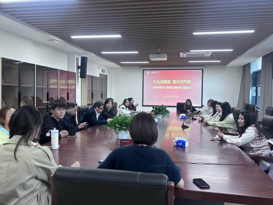 在重陽佳節(jié)來臨之際,為弘揚中華民族敬老愛老的優(yōu)良傳統(tǒng),促進代際溝通與精神傳承,10月29日下午,外語學院關(guān)心下一代工作委員會(以下簡稱“關(guān)工委”)在外語學院306會議室開展了以“九九話登高,薪火代代傳”為主題的重陽節(jié)師生座談活動。學院關(guān)工委多位老教師與青年學生代表齊聚一堂,共話人生感悟,同敘師生情誼。
