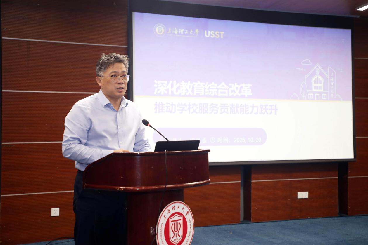 王凌宇主持并講話。他首先從國(guó)家、上海市、學(xué)校三個(gè)層面分析了教育綜合改革的背景。他指出,青年教師是學(xué)校事業(yè)發(fā)展的生力軍,要緊緊圍繞學(xué)校新的辦學(xué)定位,切實(shí)真正理解領(lǐng)會(huì)教育綜合改革的目標(biāo)和重點(diǎn)任務(wù)。要牢牢把握“重服務(wù)、強(qiáng)貢獻(xiàn)”價(jià)值導(dǎo)向,積極應(yīng)對(duì)新的辦學(xué)評(píng)價(jià)方式對(duì)學(xué)校和教師個(gè)人發(fā)展帶來(lái)的機(jī)遇和挑戰(zhàn)。學(xué)校將著力營(yíng)造良好的制度文化,增強(qiáng)各類工作機(jī)制的協(xié)同協(xié)調(diào),努力營(yíng)造促進(jìn)教師分類發(fā)展、人盡其才的良好環(huán)境。他希望全體青年教師成為學(xué)校教育綜合改革的先鋒力量,始終以改革創(chuàng)新的心態(tài),不斷深化產(chǎn)教融合,加強(qiáng)交叉融合;始終以開(kāi)放合作的心態(tài)參與開(kāi)放辦學(xué),爭(zhēng)取更多辦學(xué)資源和支持;始終以共生共榮的心態(tài),努力與改革同向同行、同頻共振,確保改革蹄疾步穩(wěn)、行穩(wěn)致遠(yuǎn)。希望全體教師深入推進(jìn)綜合改革落地見(jiàn)效,不斷提升人才培養(yǎng)質(zhì)效和科技創(chuàng)新供給水平,全面提升學(xué)校的社會(huì)服務(wù)貢獻(xiàn)力,為加快高水平科技自立自強(qiáng),推動(dòng)新質(zhì)生產(chǎn)力發(fā)展做出更大貢獻(xiàn)。
