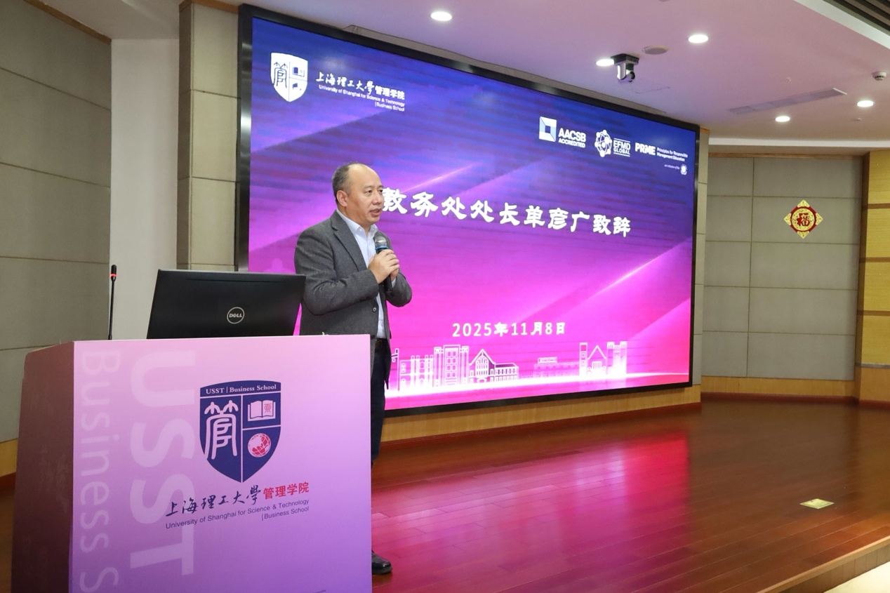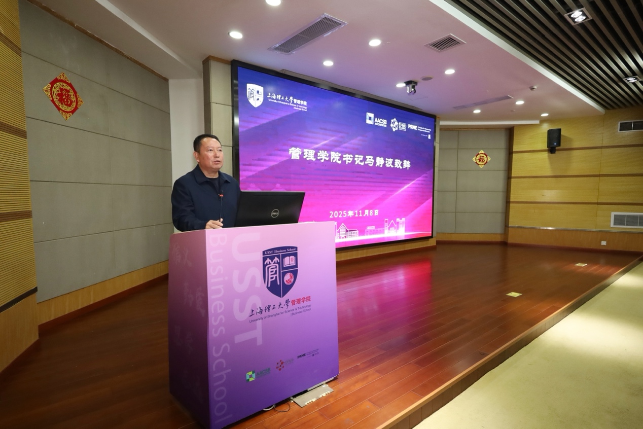 馬靜波代表管理學(xué)院對各位領(lǐng)導(dǎo)、嘉賓的到來表示熱烈歡迎,并向長期支持學(xué)院建設(shè)與發(fā)展的各方力量表示誠摯感謝。他指出,設(shè)立“人工智能+系統(tǒng)管理”創(chuàng)新班,是學(xué)院響應(yīng)國家新工科、新商科建設(shè)號召的重要舉措,也是推動學(xué)科交叉融合、創(chuàng)新人才培養(yǎng)模式的關(guān)鍵實(shí)踐。