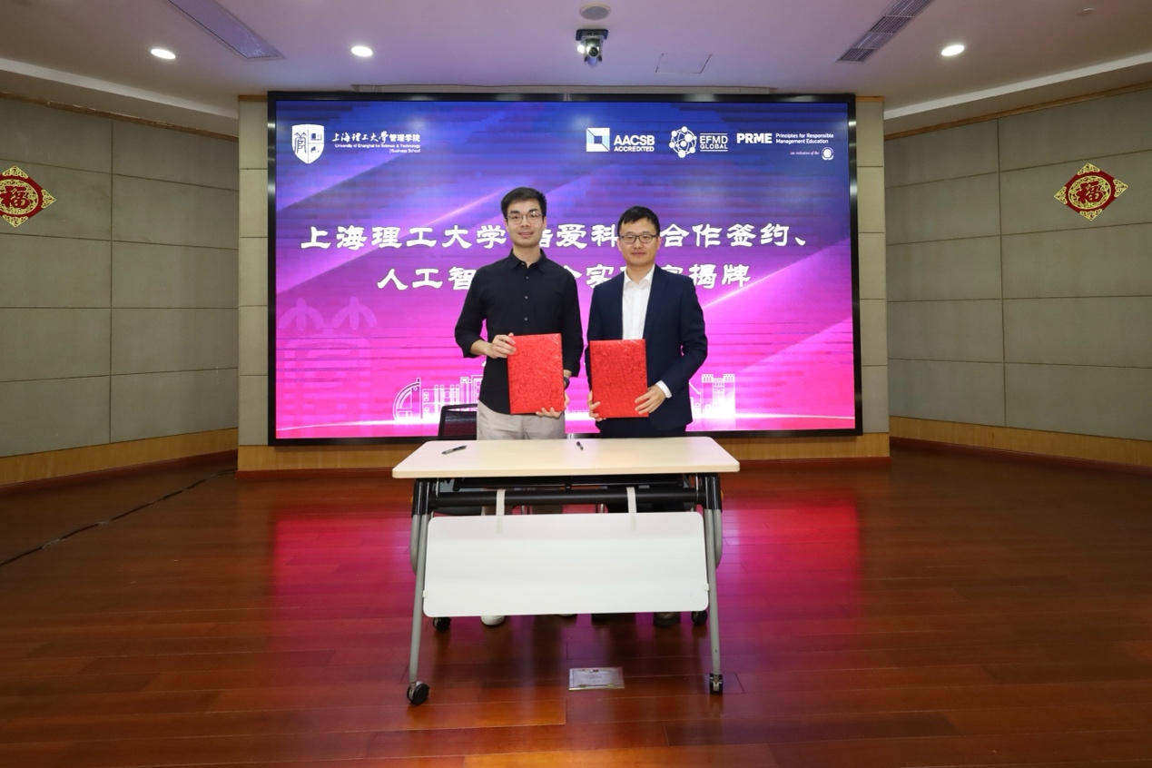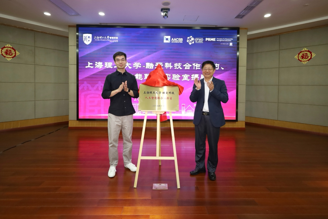 張華與張佳維共同為“上海理工大學(xué)—酷愛科技人工智能聯(lián)合實(shí)驗(yàn)室”揭牌
