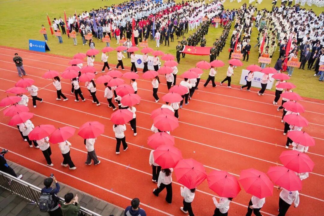 學(xué)校國(guó)旗儀仗隊(duì)高擎五星紅旗,莊嚴(yán)入場(chǎng)。伴隨著激昂的運(yùn)動(dòng)員進(jìn)行曲,各代表隊(duì)方陣緊隨其后。上海理工大學(xué)附屬小學(xué)、附屬中學(xué)、附屬儲(chǔ)能中學(xué)的學(xué)生們率先亮相,各個(gè)學(xué)院運(yùn)動(dòng)隊(duì)以各具特色的方式依次入場(chǎng),展現(xiàn)出廣大學(xué)子的青春活力。