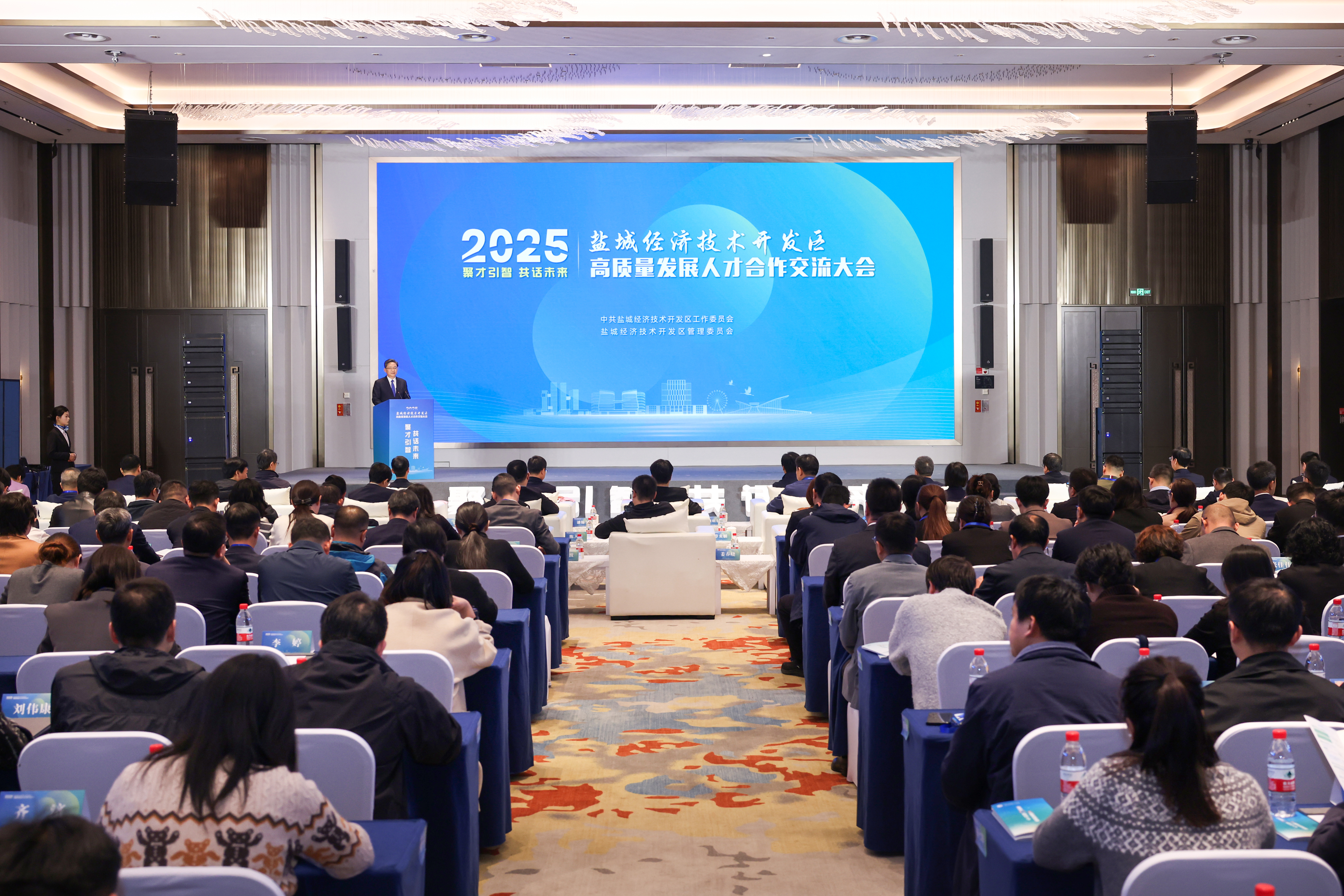 11月8日,學(xué)校參加2025年鹽城經(jīng)開區(qū)高質(zhì)量發(fā)展人才合作交流活動,與鹽城經(jīng)濟(jì)技術(shù)開發(fā)區(qū)(以下簡稱“鹽城經(jīng)開區(qū)”)共建校地合作引才工作站并舉行授牌儀式。此次活動以“聚才引智、共話未來”為主題,匯聚了來自全國高校院所、國家重大人才工程入選者、省市級高層次人才等200余位專家代表,共商區(qū)域發(fā)展大計(jì),共筑人才合作新高地。鹽城經(jīng)開區(qū)黨工委書記、管委會主任顧明東,鹽城市人力資源和社會保障局黨委委員、副局長王猛,鹽城經(jīng)開區(qū)黨工委副書記董玲玲等領(lǐng)導(dǎo)和嘉賓出席。我校學(xué)生工作部(處)副部(處)長、學(xué)生就業(yè)指導(dǎo)中心主任馮磊代表學(xué)校出席活動。