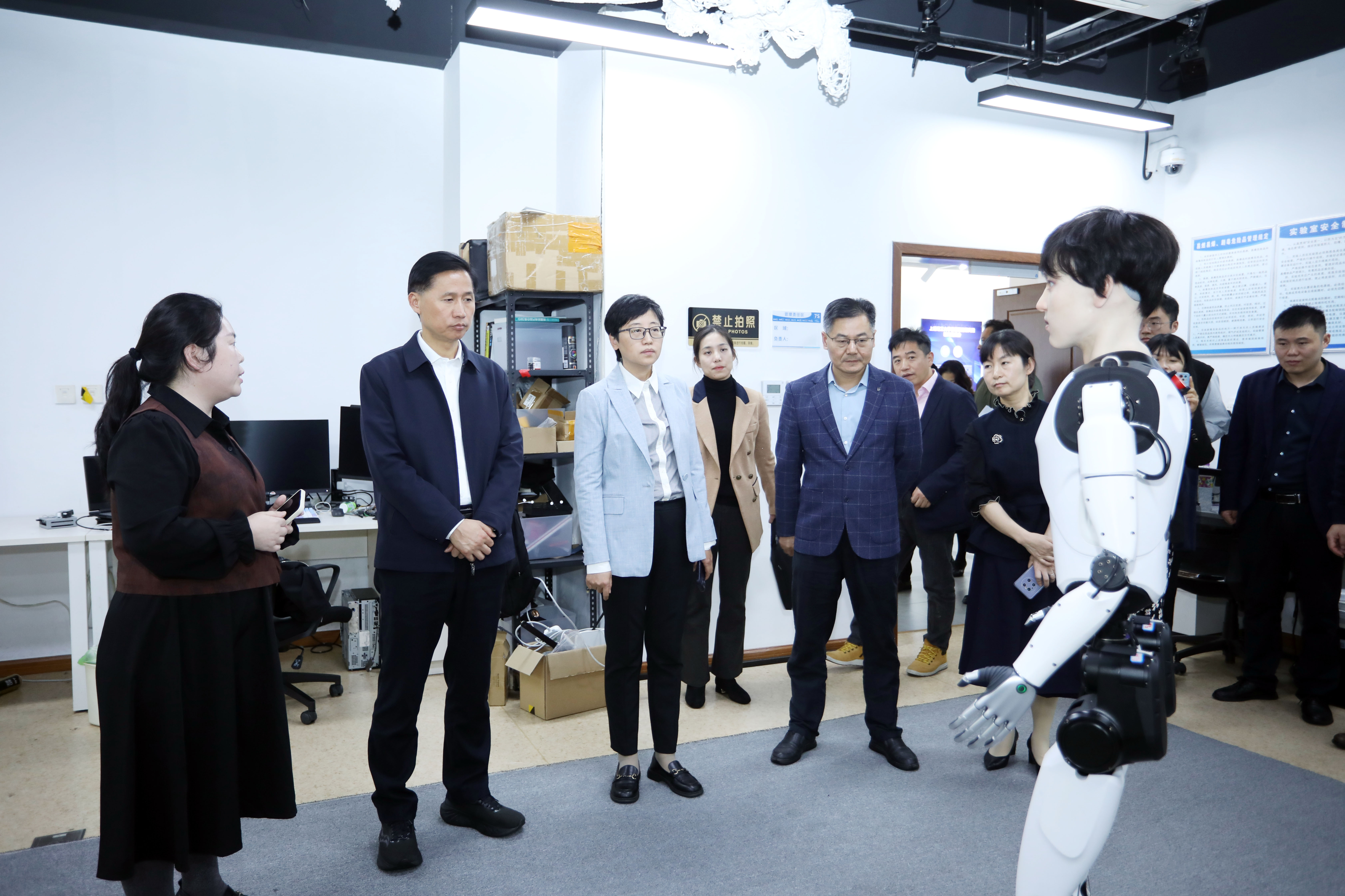 座談會前,賀莉陪同左年文一行實地參觀考察了我校機器智能研究院、智能制造實驗室、全生命周期電池管理聯(lián)合研究中心,與科研人員進行深入交流,對我校在相關(guān)領(lǐng)域取得的科研成果表示高度贊賞。