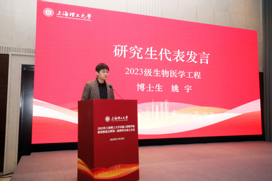 2023級生物醫(yī)學(xué)工程博士研究生姚宇作為卓越獎(jiǎng)學(xué)金獲得者發(fā)言。他分享了參與卓越工程師學(xué)院校企聯(lián)合培養(yǎng)的經(jīng)歷,講述了在“實(shí)驗(yàn)室-醫(yī)院-企業(yè)”三位一體實(shí)踐模式中的成長與突破。在校內(nèi)、校外導(dǎo)師共同指導(dǎo)下,姚宇成功構(gòu)建"微樣本-產(chǎn)線標(biāo)定轉(zhuǎn)換模型",相關(guān)成果榮獲"卓越杯"創(chuàng)業(yè)大賽二等獎(jiǎng)。他表示將堅(jiān)守“讓技術(shù)守護(hù)生命”的初心,爭做產(chǎn)學(xué)研融合的踐行者與轉(zhuǎn)型者。
