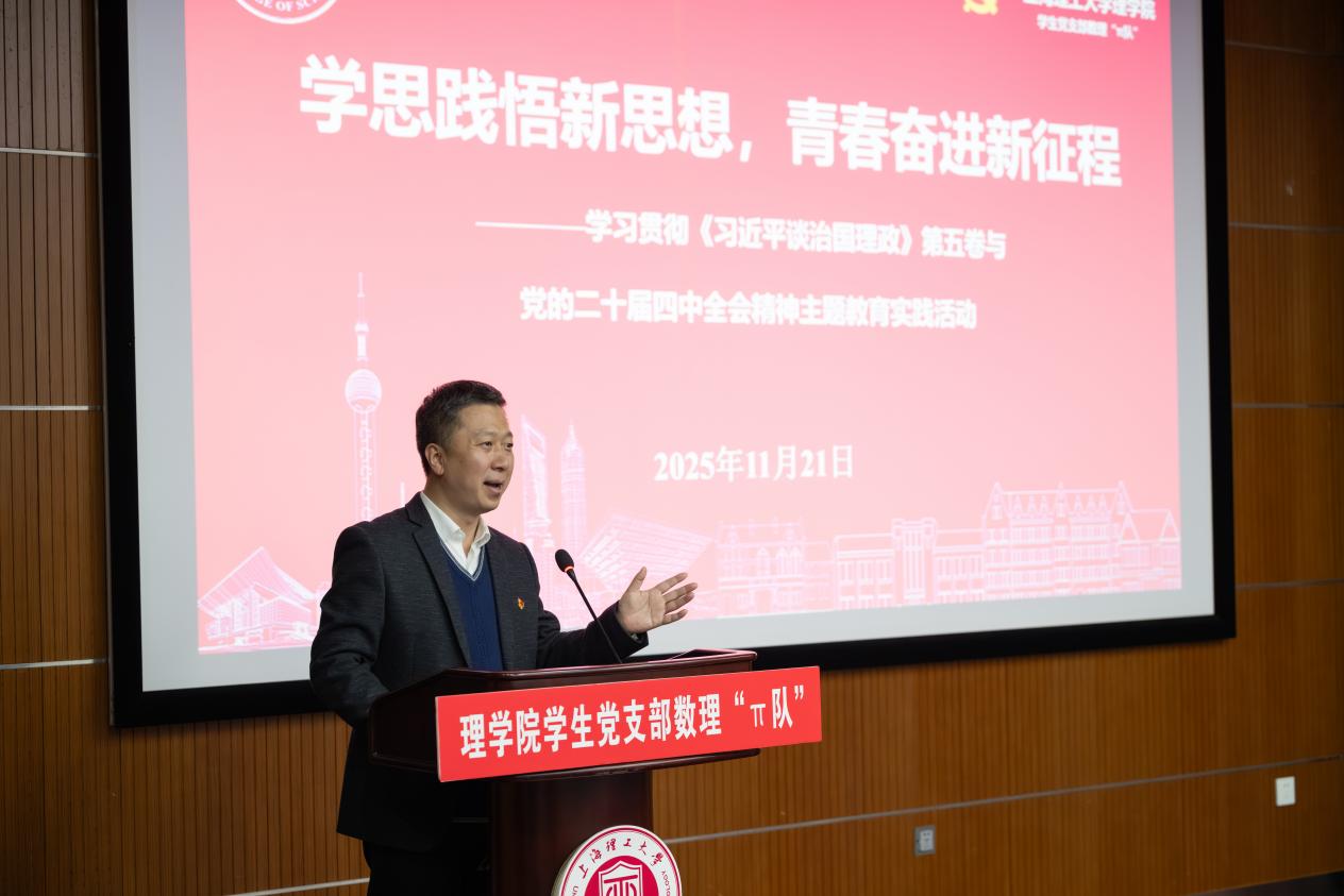 為深入學習貫徹黨的二十屆四中全會精神,深刻領會習近平總書記在紀念陳云同志誕辰120周年座談會上的重要講話精神,傳承陳云同志“不唯上、不唯書、只唯實,交換、比較、反復”的十五字訣,11月21日,上海理工大學理學院研究生應用數(shù)學黨支部與研究生應用數(shù)學第二黨支部以“數(shù)理π隊”黨建活動品牌為依托,開展“學思踐悟新思想,青春奮進新征程”主題教育實踐活動。理學院黨委書記孟寶全、學生工作部副部長劉偉、理學院黨委副書記李曉慶與全院研究生黨員齊聚一堂,共赴這場“數(shù)理+紅色”的思想盛宴。