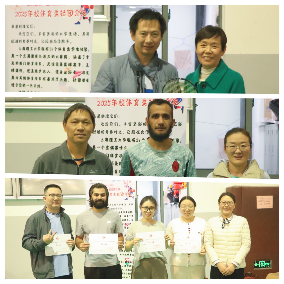 校工會(huì)副主席、婦工委專職副主任楊向?qū)帲搪毠び饏f(xié)會(huì)長(zhǎng)魏國(guó)亮以及聯(lián)誼會(huì)負(fù)責(zé)人于喆共同為獲獎(jiǎng)選手頒發(fā)榮譽(yù)證書。此次活動(dòng)不僅為青年教師們提供了鍛煉身體、切磋技藝的優(yōu)質(zhì)平臺(tái),更以羽毛球?yàn)榧~帶,打破了院系壁壘,增進(jìn)了跨部門青年教師間的溝通與情誼,為構(gòu)建和諧溫暖的校園文化氛圍增添了亮麗色彩。
