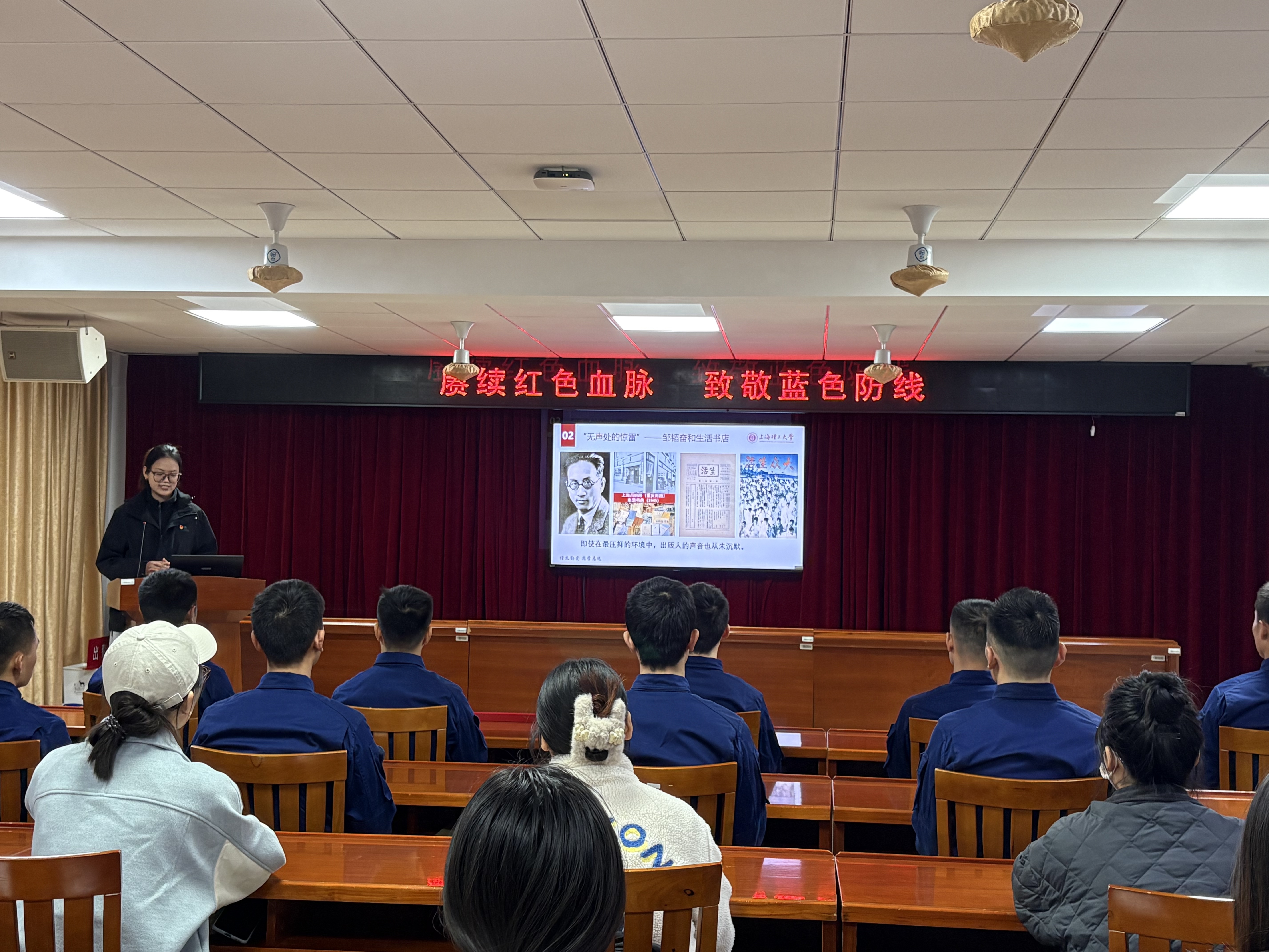 隨后,在宣講環(huán)節(jié)中,研究生黨員湯茗迪和入黨積極分子康馨予以《滬江長(zhǎng)歌:劉湛恩校長(zhǎng)的愛(ài)國(guó)豐碑》為題,深情講述了滬江大學(xué)老校長(zhǎng)劉湛恩先生從教育救國(guó)到以身殉國(guó)的感人事跡。研究生黨員周佳以《解碼軍旅精神:出版人的力量與傳承》為題,從出版學(xué)院退伍大學(xué)生士兵梁靖的經(jīng)歷切入,分享了軍營(yíng)熔爐所鍛造的忠誠(chéng)、擔(dān)當(dāng)與堅(jiān)韌品格,講述了出版戰(zhàn)線“文化戰(zhàn)士”們傳承軍旅精神、筑造文化長(zhǎng)城的動(dòng)人故事,呼吁新時(shí)代出版人承先輩之志,為繁榮社會(huì)主義文化貢獻(xiàn)智慧與力量。宣講團(tuán)情深意切、真摯動(dòng)人,在講解中將紅色的歷史血脈與藍(lán)色的忠誠(chéng)防線有機(jī)串聯(lián),贏得了現(xiàn)場(chǎng)陣陣掌聲。