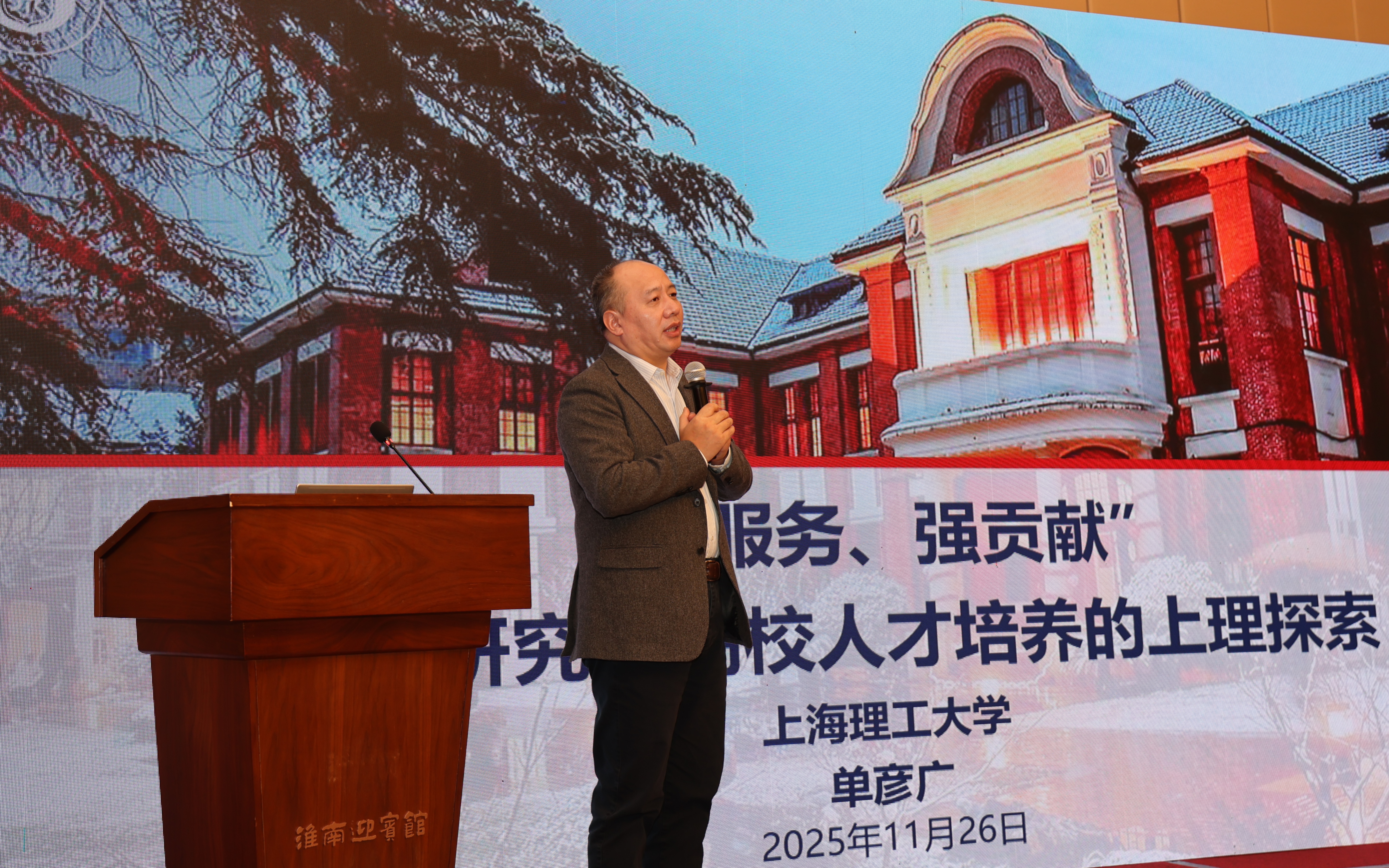 11月26日,安徽省應(yīng)用型本科高校聯(lián)盟主辦的“十五五”學(xué)科專(zhuān)業(yè)優(yōu)化與人才培養(yǎng)改革研討會(huì)在淮南舉行。應(yīng)聯(lián)盟邀請(qǐng),學(xué)校教務(wù)處處長(zhǎng)單彥廣出席會(huì)議,并作題為《“重服務(wù)、強(qiáng)貢獻(xiàn)”應(yīng)用研究型高校人才培養(yǎng)的上理探索》的主旨報(bào)告。