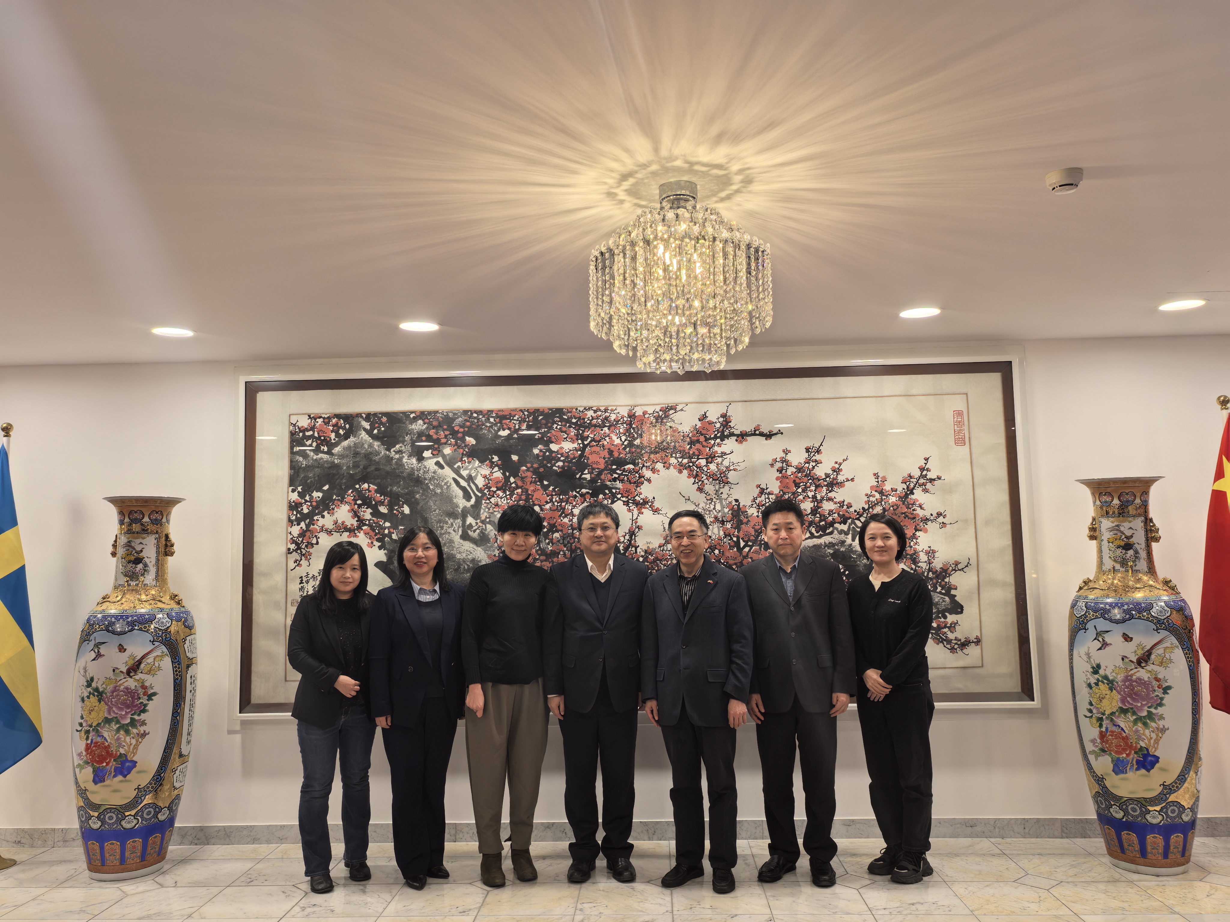 首先,我校代表團(tuán)拜訪了中國(guó)駐瑞典大使館,科技參贊崔玉亭、文化參贊李蕊、教育文化處二等秘書劉曉倩熱情接待了我校代表團(tuán)一行,還詳細(xì)詢問了我校與瑞典當(dāng)?shù)馗咚酱髮W(xué)以及科研機(jī)構(gòu)之間開展交流與合作的具體情況,同時(shí)也對(duì)我校如何進(jìn)一步深化與瑞典相關(guān)高校和機(jī)構(gòu)在教育、科技、文化等領(lǐng)域的交流與合作,提供了極具價(jià)值的指導(dǎo)和幫助,為我校未來在瑞典的國(guó)際合作發(fā)展指明了方向。
