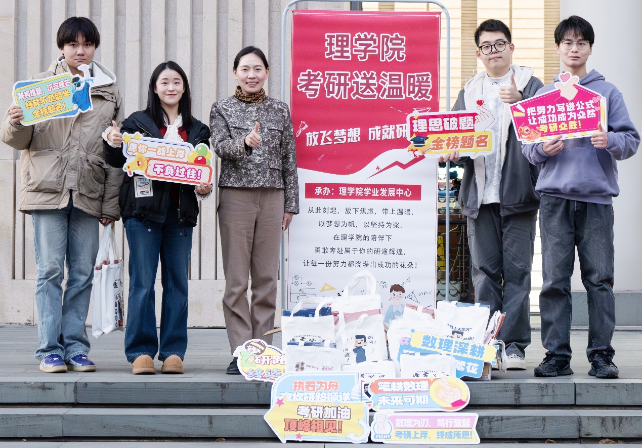 為幫助考研學子在沖刺階段調(diào)整狀態(tài)、堅定信念,理學院于12月4日在南北校區(qū)圖書館開展2025年“考研送溫暖”活動,用切實行動為即將迎戰(zhàn)考研的同學們送去力量與鼓勵?;顒赢斕?,學院黨委副書記李曉慶、畢業(yè)班輔導員趙新麗、學業(yè)發(fā)展中心指導老師龔丹走訪圖書館與同學們親切交流,并將精心準備的暖心禮包逐一送到大家手中,讓緊張的備考旅程更添一份溫暖。