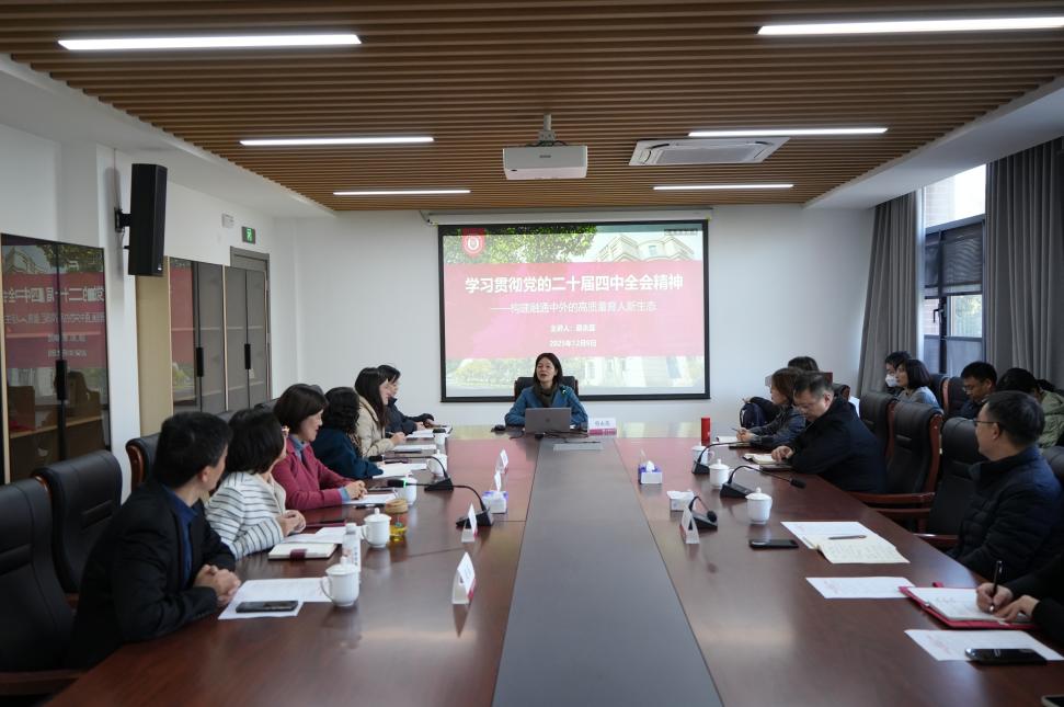 為深入學(xué)習(xí)貫徹黨的二十屆四中全會(huì)精神,切實(shí)把思想和行動(dòng)統(tǒng)一到全會(huì)部署要求上來(lái),12月9日下午,外語(yǔ)學(xué)院黨委、中德國(guó)際學(xué)院黨委、滬江學(xué)院黨總支理論學(xué)習(xí)中心組召開(kāi)聯(lián)組學(xué)習(xí)會(huì)。副校長(zhǎng)蔡永蓮出席會(huì)議并作輔導(dǎo)報(bào)告,外語(yǔ)、中德、滬江學(xué)院中心組成員參加會(huì)議,會(huì)議由外語(yǔ)學(xué)院黨委副書記、院長(zhǎng)劉芹主持。