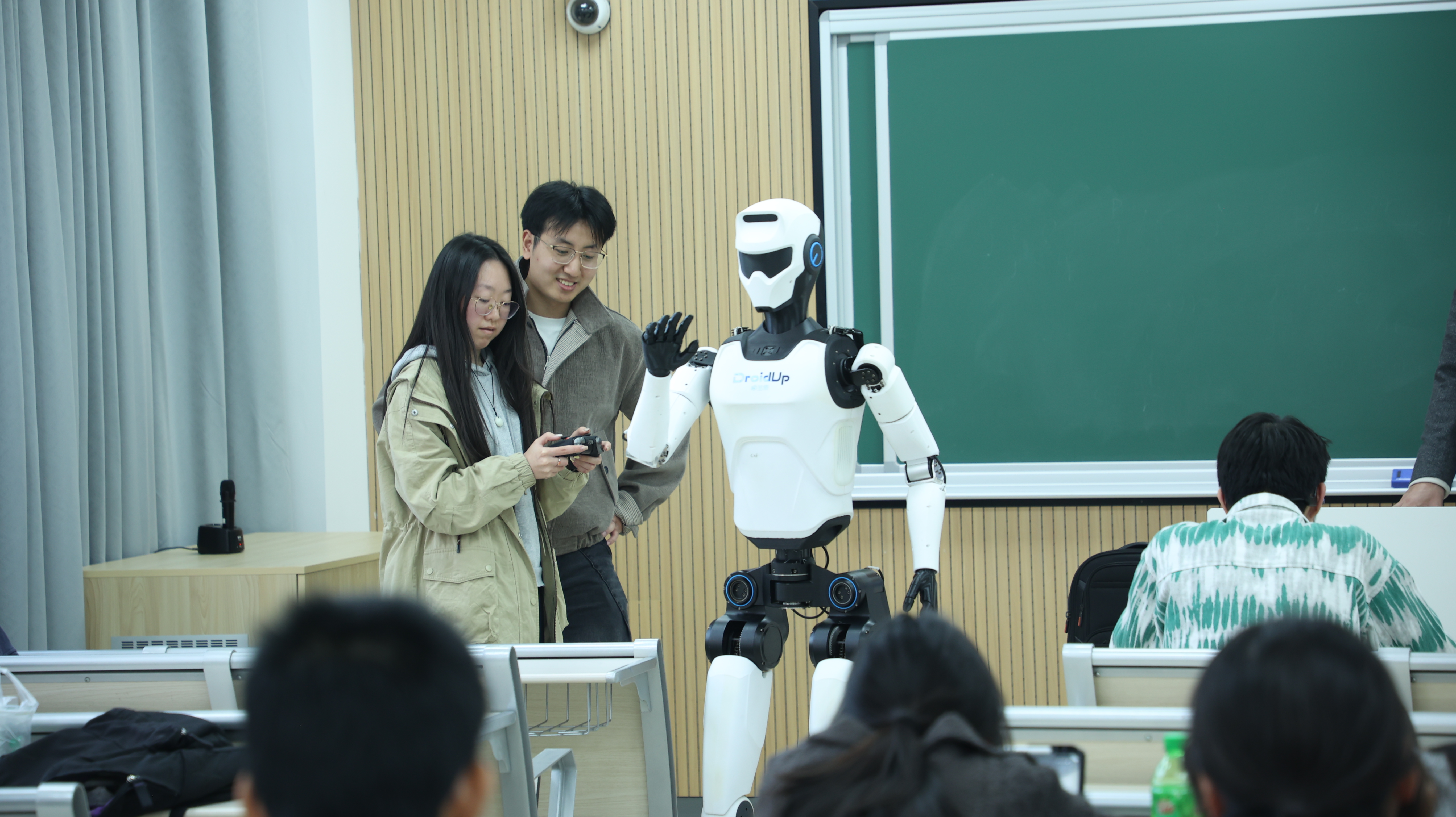 課堂上,學(xué)生們還獲得了親手操作機器人的機會。外語學(xué)院許同學(xué)興奮地表示:“操作機器人的手柄就像玩PS游戲機一樣順手,但這背后卻是我們平時接觸不到的工程知識,既新奇又有趣!”出版學(xué)院陳同學(xué)則認(rèn)為:“這是我最投入的一節(jié)課,互動性強、氛圍活躍,專業(yè)內(nèi)容和課堂形式結(jié)合得特別好?!?/span>