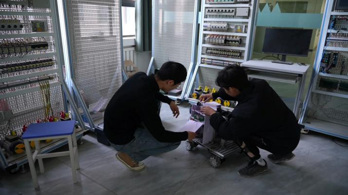 支教老師張帥在電工實(shí)訓(xùn)課上指導(dǎo)學(xué)生