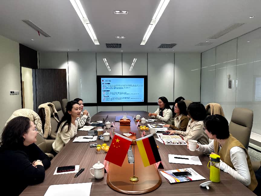 在座談交流會上,雙方重點(diǎn)圍繞雙元制教育培養(yǎng)模式、德語在雙元制教學(xué)中的應(yīng)用場景、職業(yè)資格認(rèn)證標(biāo)準(zhǔn)及畢業(yè)生就業(yè)發(fā)展路徑等關(guān)鍵議題展開深入探討。沈蓮蓮表示,外語學(xué)院高度重視應(yīng)用型人才培養(yǎng),積極探索“語言+專業(yè)技能”融合育人模式。此地實(shí)地走訪旨在精準(zhǔn)對接企業(yè)需求,將產(chǎn)業(yè)實(shí)踐要素融入教學(xué)全環(huán)節(jié),切實(shí)提升學(xué)生行業(yè)適配能力。她強(qiáng)調(diào),德語專業(yè)應(yīng)充分吸收雙元制教育“理論與實(shí)踐并重”的核心優(yōu)勢,進(jìn)一步強(qiáng)化實(shí)踐教學(xué)環(huán)節(jié),著力培養(yǎng)兼具扎實(shí)語言功底與專業(yè)素養(yǎng)的復(fù)合型人才,更好服務(wù)長三角地區(qū)中德合作企業(yè)的人才需求。卞虹、曹蕓就德語專業(yè)如何精準(zhǔn)對接中德合作企業(yè)需求、優(yōu)化課程體系等具體問題與企業(yè)深入交換意見。經(jīng)過充分溝通,雙方就開展短期研學(xué)活動、共建特色課程等合作事項(xiàng)達(dá)成初步意向。