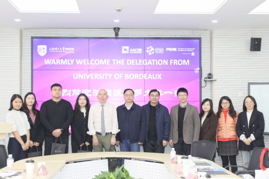 12月22日上午,法國波爾多大學經濟管理學院院長貝特朗·布朗頓,對中事務及AASF中法高校聯合培養(yǎng)計劃負責人曾祺,對中校級合作主管袁樹鋒,對中事務專員薛曉春等一行來訪上海理工大學管理學院。管理學院院長趙來軍,副院長趙靖、劉魏巍,學校國際交流處國際交流科科長劉媛,管理學院國際化辦公室主任謝偉等共同參加會談。會談由劉魏巍主持。