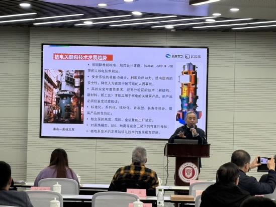 在行業(yè)技術交流會上,核電泵閥盧熙寧、上海優(yōu)賽密封科技有限公司楊慧霞總工和能動學院胡卓煥副教授分別作技術報告。大家表示共同努力推進通用機械行業(yè)產(chǎn)教融合、產(chǎn)學研合作,組建卓越工程師聯(lián)合培養(yǎng)機構(gòu),同心協(xié)力為行業(yè)發(fā)展做出新貢獻。