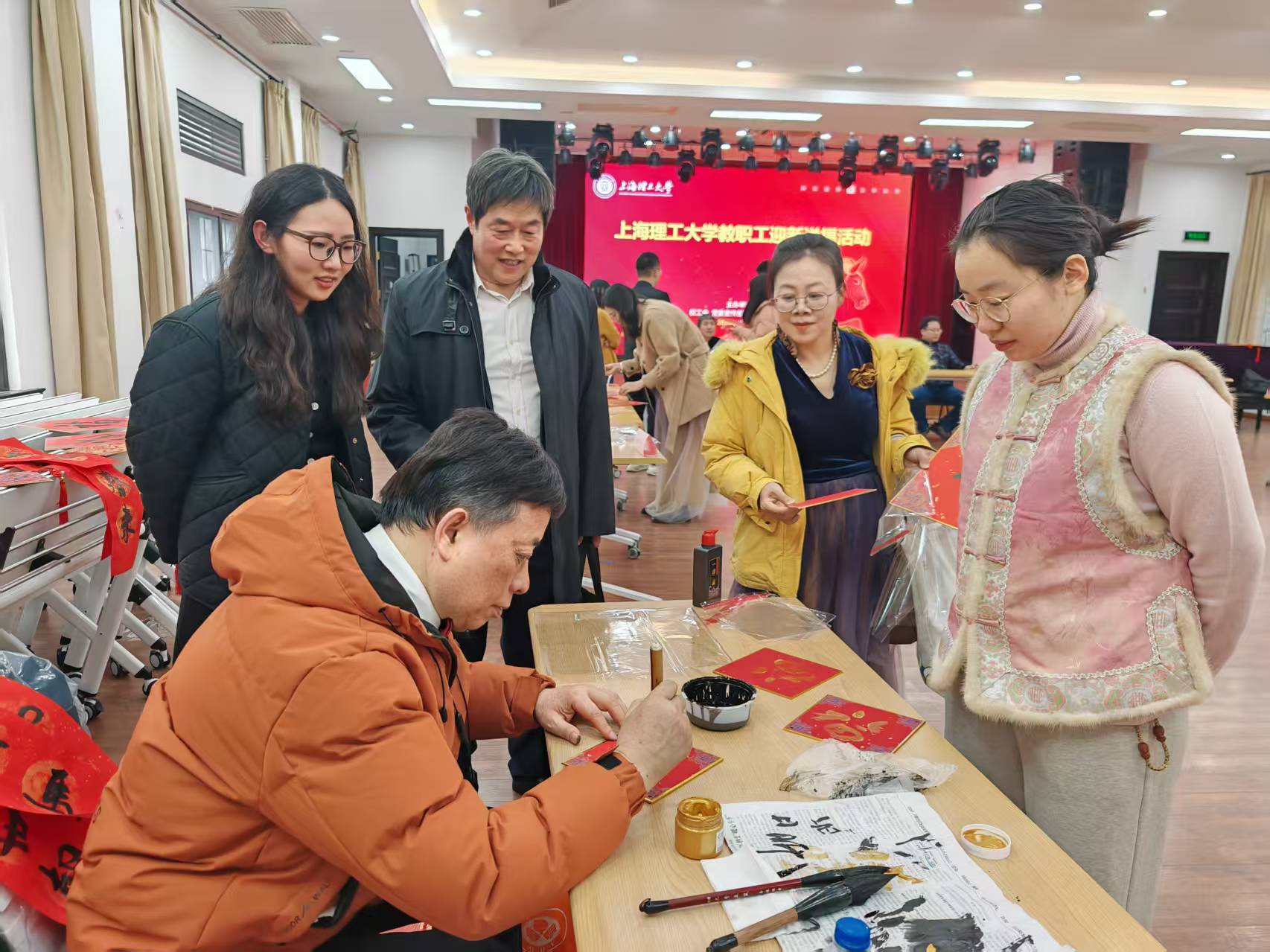 為豐富學校教職工精神文化生活,傳承中華優(yōu)秀傳統(tǒng)文化,在2026年元旦即將到來之際,12月31日中午,校工會聯(lián)合黨委宣傳部、黨委教師工作部主辦,各基層工會協(xié)辦的教職工迎新送福主題活動在教工之家舉行。出版學院宮力副教授、滬江學院董劍戟老師,退休教職工書畫興趣小組組長周昭雄、金志奇老師四位書法老師現(xiàn)場助陣,學校100多名教職工踴躍參與。