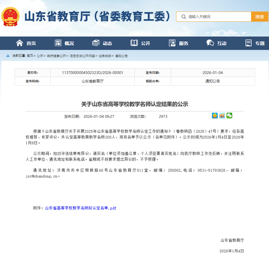 此次唐睿校友入選山東省高等學(xué)校教學(xué)名師,既是對其個人教學(xué)能力與育人成效的高度認(rèn)可,也是我校人才培養(yǎng)質(zhì)量的生動體現(xiàn),更彰顯了學(xué)校校友群體在教育領(lǐng)域的風(fēng)采。未來,健康科學(xué)與工程學(xué)院將持續(xù)深化教育教學(xué)改革,進(jìn)一步加強(qiáng)校友聯(lián)絡(luò)與協(xié)同育人機(jī)制建設(shè),充分發(fā)揮優(yōu)秀校友的示范引領(lǐng)作用,為國家健康事業(yè)發(fā)展和區(qū)域經(jīng)濟(jì)社會進(jìn)步貢獻(xiàn)更多“上理力量”。