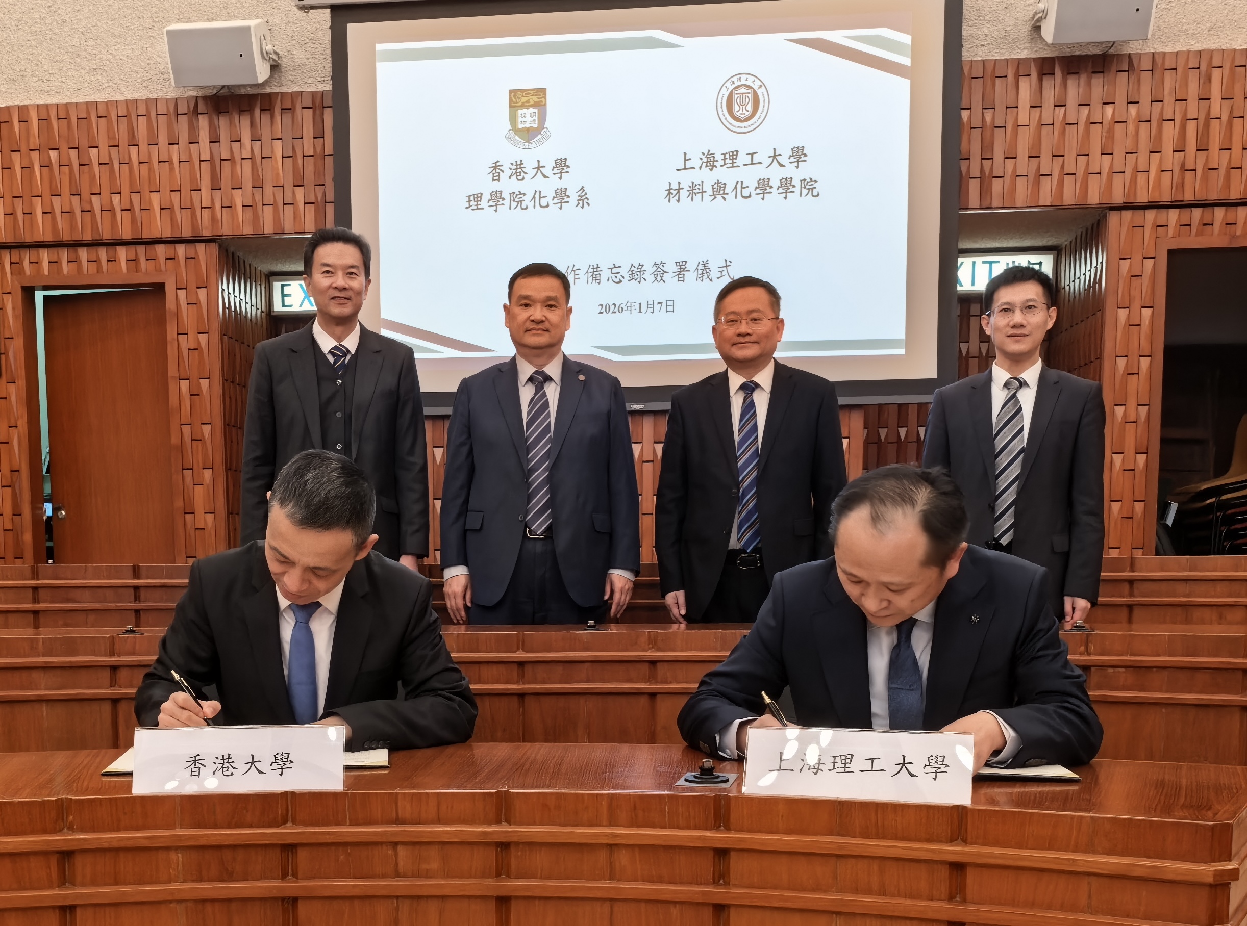 1月7日下午,代表團(tuán)訪問香港大學(xué),與全球事務(wù)副校長尹曉波及理學(xué)院、化學(xué)系等相關(guān)負(fù)責(zé)人進(jìn)行會(huì)談。在前期扎實(shí)科研合作的基礎(chǔ)上,香港大學(xué)理學(xué)院與我校材化學(xué)院正式簽署了合作備忘錄。雙方將在人才培養(yǎng)、師生交流、平臺(tái)建設(shè)等方面探索合作新路徑,進(jìn)一步推進(jìn)“鉍科學(xué)與健康醫(yī)學(xué)材料滬港聯(lián)合實(shí)驗(yàn)室”的建設(shè)。