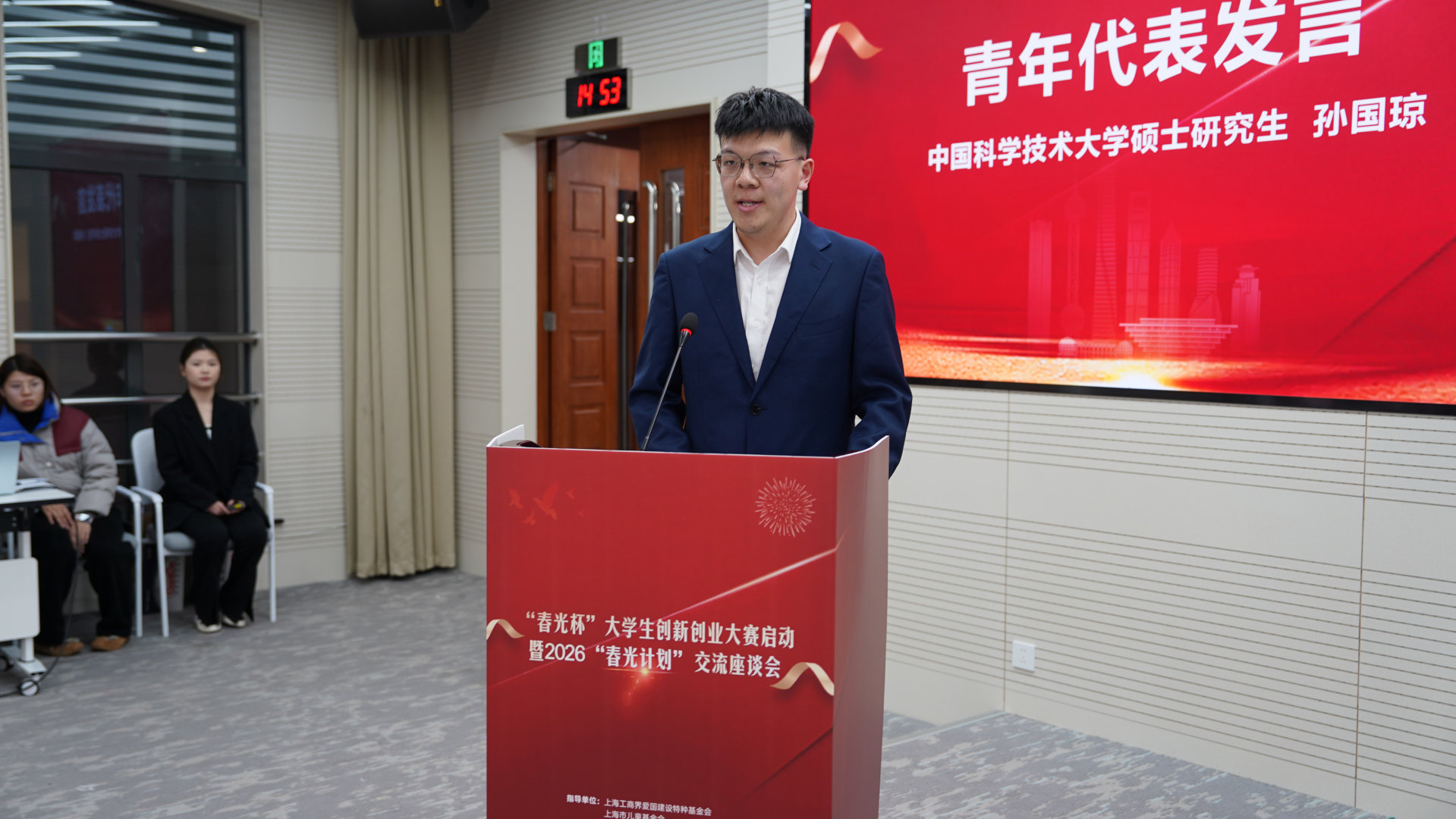 中國科學(xué)技術(shù)大學(xué)碩士研究生孫國瓊作為青年代表發(fā)言,分享自身在科研與創(chuàng)業(yè)實(shí)踐中的思考與感悟,展現(xiàn)了新時(shí)代青年的責(zé)任擔(dān)當(dāng)與行動(dòng)力。