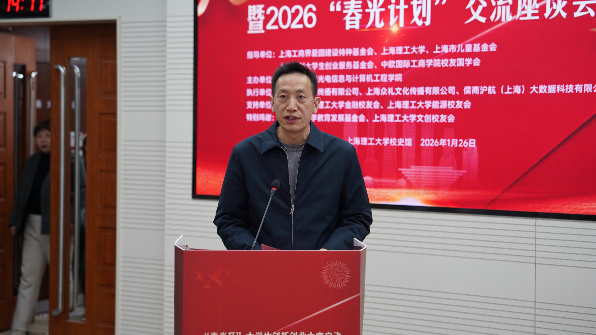 1月26日下午,“春光杯”大學(xué)生創(chuàng)新創(chuàng)業(yè)大賽啟動(dòng)儀式暨2026“春光計(jì)劃”交流座談會(huì)在我校隆重舉行。本次活動(dòng)由上海工商界愛國建設(shè)特種基金會(huì)、上海理工大學(xué)、上海市兒童基金會(huì)、上海青創(chuàng)大學(xué)生創(chuàng)業(yè)服務(wù)基金會(huì)及中歐國際工商學(xué)院校友國學(xué)會(huì)共同指導(dǎo),上理工光電學(xué)院主辦,旨在匯聚社會(huì)各界力量,共商青年創(chuàng)新創(chuàng)業(yè)大計(jì),服務(wù)國家人才戰(zhàn)略,培育新質(zhì)生產(chǎn)力。