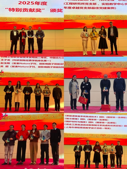 為表彰先進、樹立典型,活動中頒發(fā)“特別貢獻獎”、“黨建貢獻獎”及“教學(xué)貢獻獎”等個人及團隊獎項。黃典貴、金晶、章立新等老師憑借在學(xué)科建設(shè)、青年教師指導(dǎo)及工會工作中的突出貢獻受到表彰;崔國民、武衛(wèi)東、楊薈楠、盛健等教學(xué)團隊及王秋麟老師因卓越的教學(xué)探索獲此榮譽。蘇明旭副院長、楊杰副院長、錢海燕副書記分別為獲得“科研貢獻獎”、“服務(wù)貢獻獎”及“育人貢獻獎”的老師頒獎。竇玉海、李凌、崔巍等一大批科研骨干,陳曦、姜穎杰等管理服務(wù)人員,以及田雅芬、高鵬等育人先鋒接受了全院師生的致敬。此外,學(xué)院工會主席魏燕也對一年來默默奉獻的工會積極分子和優(yōu)秀工會工作者進行了表彰,并感謝了全院教師對工會活動的支持?;顒犹貏e設(shè)置致敬環(huán)節(jié),向服務(wù)十年整、二十年整的教師們以及2025年光榮退休的陶樂仁、祁影霞老師獻花。