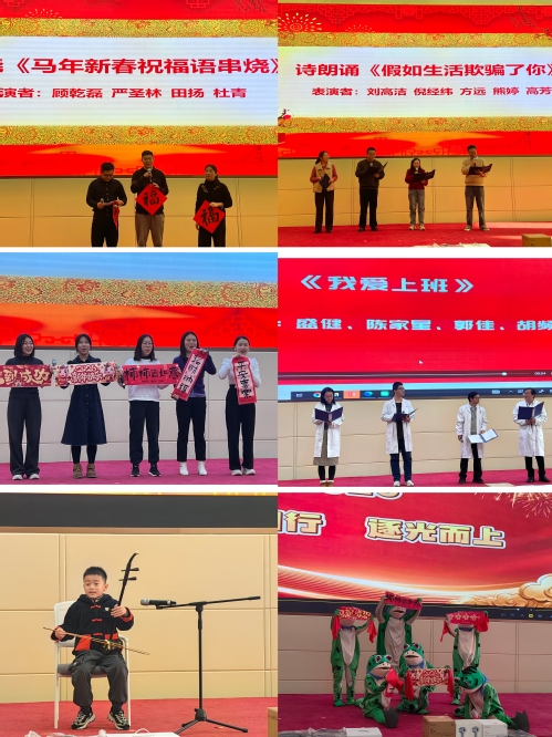 現(xiàn)場節(jié)目精彩紛呈,氣氛熱烈。能材院、儲能所及制冷所教師代表帶來的舞蹈《蛙!貴人來了!》活力四射,瞬間點燃了全場熱情;“能動二代”高海棋小朋友的二胡獨奏《小星星》天真爛漫,展現(xiàn)了教職工子女的風(fēng)采。熱工所與能材院教師帶來的方言詩朗誦《假如生活欺騙了你》,用五湖四海的鄉(xiāng)音傳遞了深厚情懷;空天所與熱能所“雙嘉組合”趙嘉毅、陳嘉琪老師獻唱《直到世界的盡頭》,激昂的旋律唱出了科研人探索未知的執(zhí)著。新進教師們帶來的《馬年新春祝福語串燒》和實驗中心老師們自編自演的節(jié)目《我愛上班》,以幽默暖心的方式道出了對工作的熱愛與堅守。主持人李銘哲老師以一首民謠《你的姑娘》,深情謳歌了前輩們扎根三尺講臺、無私奉獻的教育情懷,令在場觀眾動容。值得一提的是,劉寶林院長帶來的薩克斯獨奏《天路》婉轉(zhuǎn)悠揚的樂聲,不僅展現(xiàn)了藝術(shù)修養(yǎng),更致敬了每一段奮斗的征程,贏得了現(xiàn)場經(jīng)久不息的掌聲。