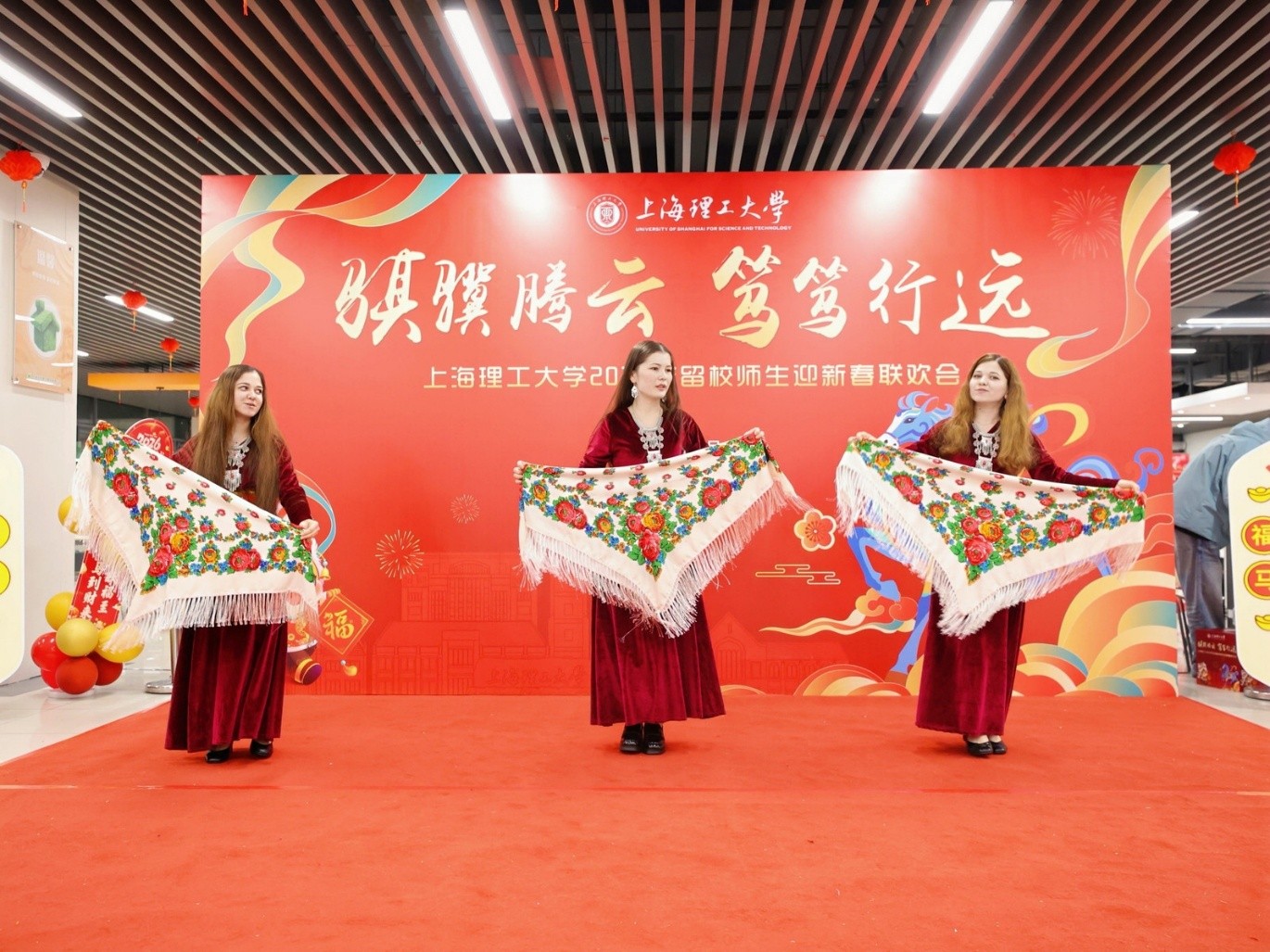 歲序更迭,暖聚校園。為扎實(shí)做好寒假留校學(xué)子的服務(wù)保障工作,讓遠(yuǎn)在異鄉(xiāng)的學(xué)子感受家的溫暖,學(xué)校在2月6日舉辦2026年留校師生迎新春聯(lián)歡會(huì),上海市政府副秘書(shū)長(zhǎng)、市教衛(wèi)工作黨委副書(shū)記、市教委主任周亞明,市教委學(xué)生處處長(zhǎng)丁良,校黨委書(shū)記王凌宇,校長(zhǎng)朱新遠(yuǎn),校黨委副書(shū)記、副校長(zhǎng)劉德強(qiáng),副校長(zhǎng)岳海洋等與400余名留校學(xué)子齊聚一堂,共賀新歲、共話溫情,讓這個(gè)新春滿溢暖心溫度。教委相關(guān)處室負(fù)責(zé)人,學(xué)校相關(guān)職能部門(mén)和學(xué)院黨政負(fù)責(zé)人,輔導(dǎo)員代表等參加聯(lián)歡會(huì)。