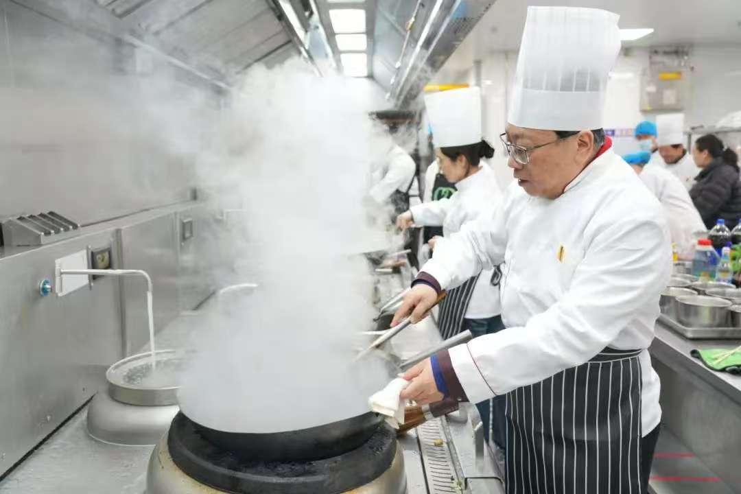 拓印福字的紅紙未干,食堂后廚已飄出陣陣菜香,上海建橋學院校領導們系著圍裙,戴著廚師帽,正將剛出鍋的宮保雞丁、可樂雞翅等裝盤……家常菜,最有煙火味,也最有家的味道。在臨港校區(qū)南食堂三樓的桃源餐廳,留校學生們圍坐在一起,等待馬年團圓宴開席。