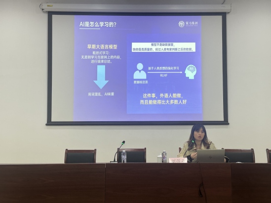 劉強云以時代發(fā)展為背景,圍繞“人工智能時代外語人才的職業(yè)新通路”展開深入淺出的講解。她結(jié)合當前技術(shù)趨勢,解析了數(shù)據(jù)標注作為AI基礎設施的核心價值,并詳細論述了外語學習者在高階數(shù)據(jù)標注,尤其是專家標注、跨文化判斷以及法律金融等復雜任務中的獨特優(yōu)勢。她指出,當前“十五五”規(guī)劃已把高質(zhì)量數(shù)據(jù)集的構(gòu)建列為重要方向,作為聯(lián)合國官方指定服務商,同時也是“聯(lián)合國大學全球人工智能網(wǎng)絡”的合作伙伴,策馬集團目前正全面拓展高端數(shù)據(jù)標注業(yè)務,亟需具備較強語言功底與專業(yè)判別能力的外語類專業(yè)人才。她歡迎同學們加入人工智能數(shù)據(jù)產(chǎn)業(yè)隊伍,積極響應人工智能時代的產(chǎn)業(yè)變革,將外語專業(yè)能力遷移至人工智能數(shù)據(jù)工程領域,成為銜接人機世界的橋梁。