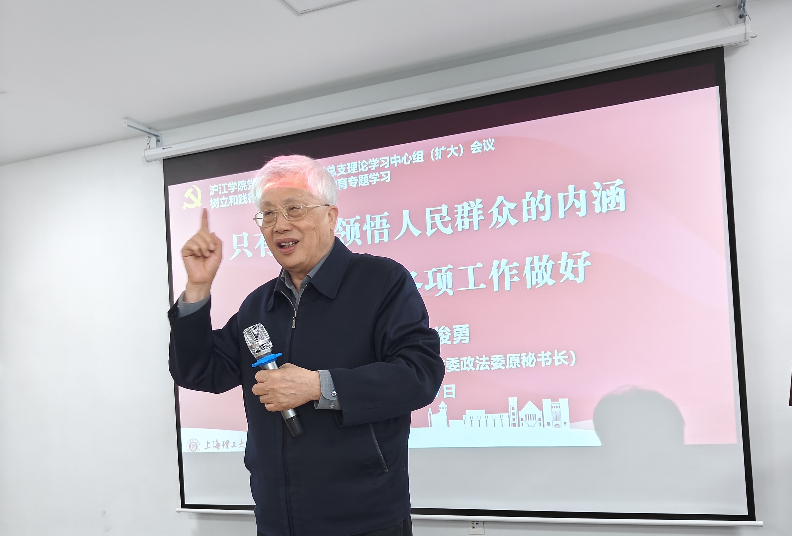 為深入推進(jìn)樹立和踐行正確政績觀學(xué)習(xí)教育,4月7日,滬江學(xué)院黨總支與體育部黨總支聯(lián)合召開主題為“只有真正領(lǐng)悟人民群眾的內(nèi)涵,才能把我們各項(xiàng)工作做得更好”的理論學(xué)習(xí)中心組(擴(kuò)大)會議,特別邀請到上海市政府原副秘書長、市委政法委原秘書長柴俊勇作專題報(bào)告。會議由滬江學(xué)院副院長朱慧鋒主持。