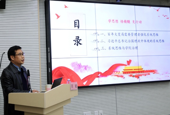 3月9日上午,機械工程學(xué)院、管理學(xué)院領(lǐng)導(dǎo)班子聯(lián)組學(xué)習(xí)暨工作交流會于經(jīng)管大樓A樓506會議室召開。機械工程學(xué)院和管理學(xué)院全體領(lǐng)導(dǎo)班子、相關(guān)負責(zé)人代表出席會議。會議由管理學(xué)院黨委書記馬靜波主持。學(xué)校二十大精神宣講團成員、管理學(xué)院劉斌教授作“習(xí)近平總書記治國理政中體現(xiàn)的系統(tǒng)思維及其啟示”報告,從“百年大變局需要管理者強化系統(tǒng)思維”“習(xí)近平總書記治國理政中體現(xiàn)的系統(tǒng)思維”“系統(tǒng)思維與學(xué)院治理”三個方面介紹了習(xí)近平總書記治國理政中所體現(xiàn)前瞻性思考、全局性謀劃、整體性推進的系統(tǒng)思維及其啟示。他指出,高等教育現(xiàn)代化是中國式現(xiàn)代化重要組成部分。實現(xiàn)高等教育現(xiàn)代化是一個復(fù)雜的系統(tǒng)工程,高校領(lǐng)導(dǎo)要心懷“國之大者”,把握高等教育發(fā)展大勢、敢于擔(dān)當(dāng)、善于作為,書寫高等教育現(xiàn)代化的上海理工大學(xué)新篇章。與會人員圍繞深入學(xué)習(xí)貫徹黨的二十大精神進行了深入學(xué)習(xí)交流。會上,雙方就學(xué)院文化建設(shè)、高層次人才引育、學(xué)科發(fā)展、學(xué)院品牌及社會影響力等方面工作進行了討論交流,圍繞專業(yè)學(xué)位聯(lián)合培養(yǎng)、博士點共同申報建設(shè)等方面進一步加強合作進行了深入研究,達成工作共識,雙方表示將發(fā)揮互補優(yōu)勢,推動資源共享,深化合作共贏。本次交流學(xué)習(xí)活動是