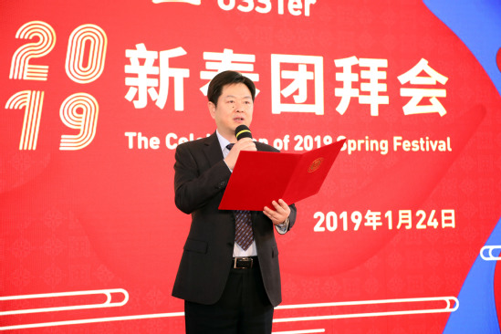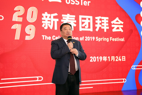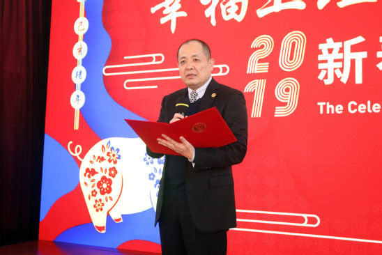 黨委書(shū)記吳松代表學(xué)校致新春賀辭。他首先向各級(jí)領(lǐng)導(dǎo)、合作單位、離退休老領(lǐng)導(dǎo)、老同志、海內(nèi)外校友以及長(zhǎng)期以來(lái)關(guān)心支持學(xué)校發(fā)展的各屆朋友,向團(tuán)結(jié)奮斗的全校師生員工表示衷心的感謝。他指出,2018年,是上海理工大學(xué)發(fā)展歷程中極不平凡的一年,上理人用不懈的奮斗,收獲了豐碩的成果,也收獲了滿滿的幸福。全校上下以習(xí)近平新時(shí)代中國(guó)特色社會(huì)主義思想和黨的十九大精神為指引,貫徹落實(shí)全國(guó)教育大會(huì)精神,按照學(xué)校第八次黨代會(huì)的部署,全面推進(jìn)高水平大學(xué)建設(shè),不斷開(kāi)創(chuàng)事業(yè)發(fā)展的新局面。在展望2019年工作時(shí),吳松強(qiáng)調(diào),“船到中流浪更急,人到半山路更陡”,2019年的建設(shè)與發(fā)展的任務(wù)更加艱巨,全校上下更應(yīng)當(dāng)緊密團(tuán)結(jié)、齊心合力、攻堅(jiān)克難,力爭(zhēng)取得更大成績(jī)。吳松攜全體校領(lǐng)導(dǎo)走上舞臺(tái),向所有來(lái)賓、全校師生、海內(nèi)外校友、各界朋友拜年,向大家致以誠(chéng)摯的新春祝福。
