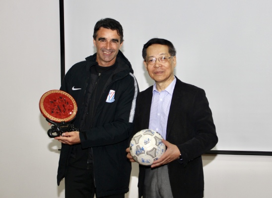 講座結(jié)束后,莊院士代表學(xué)院對俱樂部的到來表示熱烈的歡迎。生活中莊院士和家人都是申花的球迷,十分關(guān)注申花的各項賽事,他表示,看到朝氣蓬勃的青訓(xùn)隊來校參觀學(xué)習(xí)十分開心,希望青訓(xùn)隊能培養(yǎng)出更多優(yōu)秀的球員,期望他們未來能成為家喻戶曉的球星,同時也祝愿俱樂部越辦越好。