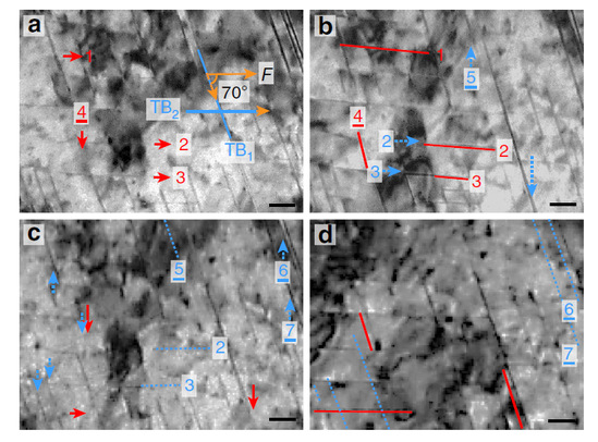 納米孿晶有望解決材料強(qiáng)韌性矛盾這一科學(xué)難題。不同尺度孿晶的變形機(jī)制是控制強(qiáng)度-塑性協(xié)同關(guān)系的主導(dǎo)因素。因此,微納尺度孿晶變形行為的解析對(duì)微觀結(jié)構(gòu)的設(shè)計(jì)和高性能材料的制備具有重要意義。本研究工作將透射電鏡下的原位拉伸試驗(yàn)與位錯(cuò)基理論模型和分子動(dòng)力學(xué)模擬相結(jié)合,揭示了孿晶變形的尺度效應(yīng),并建立了幾納米到幾百納米孿晶變形圖譜。原位拉伸實(shí)驗(yàn)發(fā)現(xiàn)孿晶變形存在兩個(gè)臨界尺度:當(dāng)孿晶尺度小于5 nm時(shí),以一級(jí)孿晶的孿晶化和退孿晶化為主;當(dāng)孿晶尺度為5 - 129 nm時(shí),由一級(jí)孿晶變形轉(zhuǎn)變?yōu)槎?jí)孿晶變形;當(dāng)孿晶尺度大于129 nm時(shí),以一級(jí)孿晶內(nèi)部的位錯(cuò)運(yùn)動(dòng)為主。力學(xué)模擬和分子動(dòng)力學(xué)模擬結(jié)果與原位觀察的尺度效應(yīng)高度一致,闡明了由不全位錯(cuò)滑移引起的內(nèi)稟機(jī)制和演變過程。該工作對(duì)于先進(jìn)高強(qiáng)高韌鋼的結(jié)構(gòu)設(shè)計(jì)和輕量化應(yīng)用有重要意義。該工作得到國(guó)家自然科學(xué)基金委、上海市科委項(xiàng)目資助。