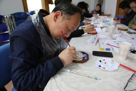 精彩的電影片段激發(fā)了師生滿腔的創(chuàng)作熱情。在DIY協(xié)會(huì)成員的指導(dǎo)下,在場(chǎng)師生在木頭年輪上繪制出一幅幅“紅色”年輪畫。有的繪制了鞠躬盡瘁,全心全意為人民服務(wù)的周恩來總理;有的繪制出堅(jiān)貞不屈,在敵人的鍘刀下英勇就義的劉胡蘭烈士;還有的繪制了《閃閃的紅星》里抗擊日寇的少年潘冬子、《地雷戰(zhàn)》中無畏的抗日民眾等文學(xué)電影形象。一個(gè)個(gè)活靈活現(xiàn)的身影,無一不體現(xiàn)著師生對(duì)于英雄楷模的深情寄托。