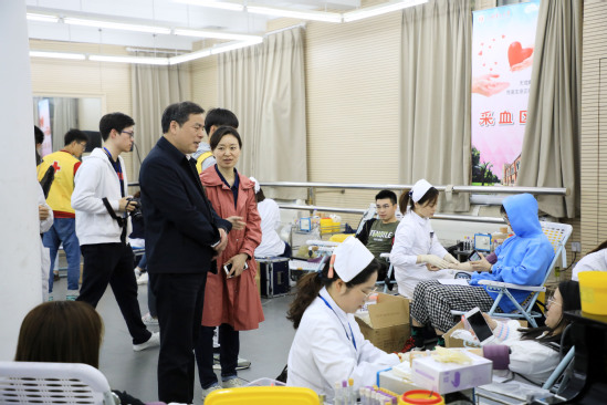 5月6日至9日,我校組織的2019年無償獻(xiàn)血活動(dòng)在大禮堂火熱開展,校長(zhǎng)丁曉東,副書記、副校長(zhǎng)盛春,副校長(zhǎng)吳忠分別到獻(xiàn)血現(xiàn)場(chǎng)看望和慰問了獻(xiàn)血師生、醫(yī)務(wù)人員和志愿者們,并向無償獻(xiàn)血的師生和工作人員表達(dá)親切的問候和崇高的敬意!