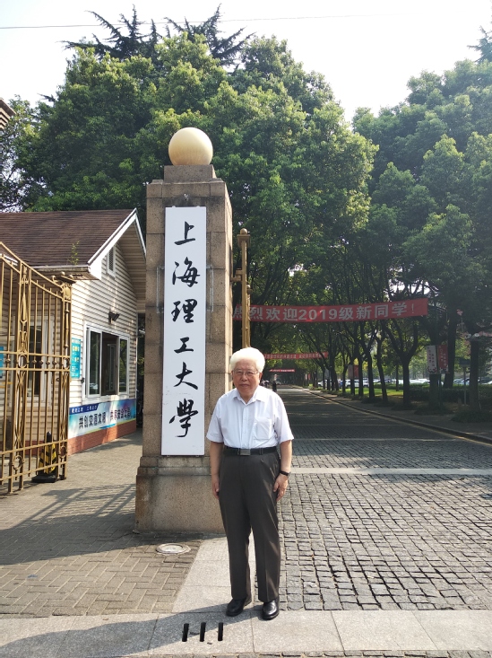 周立偉院士在學校大門前留影