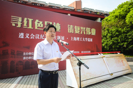 為深入開展“不忘初心、牢記使命”主題教育,弘揚艱苦奮斗的革命精神,9月12日上午,“遵義會議、偉大轉(zhuǎn)折——遵義會議紀念館主題展覽”上海理工大學巡展拉開了序幕。本次主題展覽由中共上海市教育衛(wèi)生工作委員會、上海市教育委員會、遵義會議紀念館主辦,上海理工大學、上海高校博物館育人聯(lián)盟承辦,以“尋紅色足跡鑄復興偉業(yè)”為主題。市教衛(wèi)工作黨委副書記、市教委副主任李昕,遵義市委常委、副市長、上海市第三批援黔聯(lián)絡組組長尼冰,遵義會議紀念館館長陳松,市教委德育處處長沙軍,校領導吳堅勇、丁曉東、劉道平、盛春、劉平、趙明、張華,校黨委常委、組織部長孫紅,校黨委常委、宣傳部長葉磊和全體中層正職干部出席開幕式,開幕式由校黨委副書記孫躍東主持。