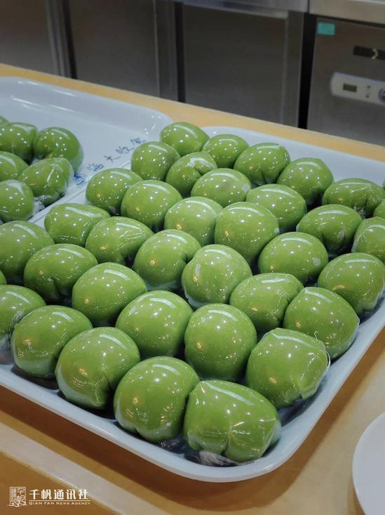 上海海事大學(xué)食堂推出青團(tuán)啦,有蛋黃肉松、紅豆沙、蓮蓉、蜜豆、奶黃等多種口味的青團(tuán)供師生挑選,價(jià)格實(shí)惠,3元、4元、5元一只不等,快去品嘗吧!