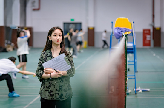 在羽毛球競(jìng)賽班擔(dān)任裁判的宮曉晴同學(xué)