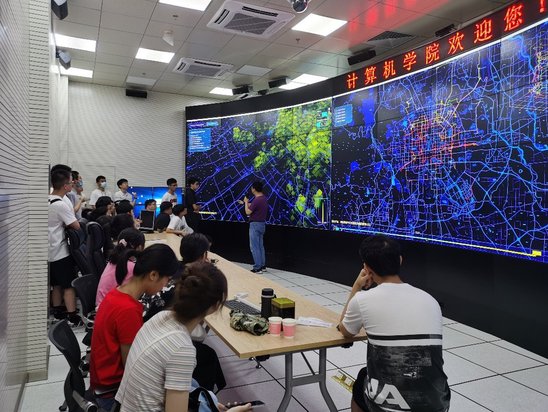 這兩天,上海大學(xué)計(jì)算機(jī)學(xué)院150多名新生分批次參觀、第一次見到大數(shù)據(jù)后臺(tái)系統(tǒng)“中國(guó)視云”,長(zhǎng)十多米、高三米多的曲面屏上飛快跳動(dòng)著城市交通道路信息的分析和處理過程,令新生大開眼界。