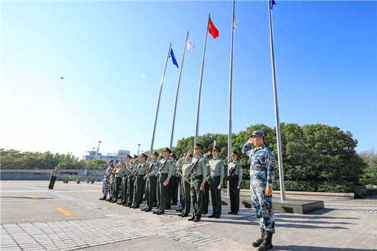 “這面五星紅旗見(jiàn)證了共和國(guó)走過(guò)的72個(gè)春秋,而我們也將繼續(xù)在這面紅旗下繼續(xù)前進(jìn)!完成中華民族的偉大復(fù)興的光榮使命!”退伍學(xué)生代表在國(guó)旗下莊嚴(yán)宣誓。他們?cè)?jīng)身著戎裝,保家衛(wèi)國(guó),如今脫下軍裝,但這份使命感已經(jīng)深深刻入他們的靈魂?!澳罴覈?guó),懷憂樂(lè)、天行健,我自強(qiáng)”,他們以自己莊重的誓詞,表達(dá)了自己心系國(guó)家,奮發(fā)自強(qiáng)的決心。