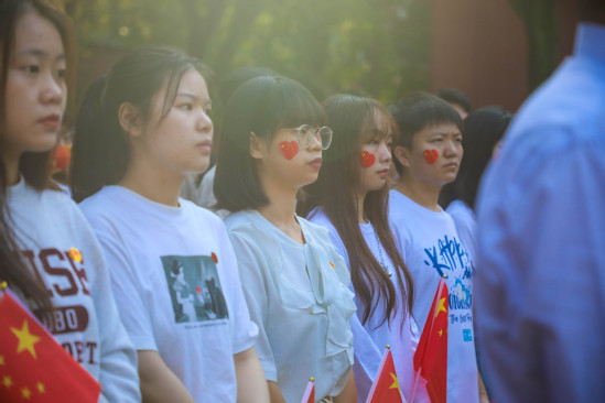 只見升旗手們護(hù)衛(wèi)著鮮艷的五星紅旗入場(chǎng),他們著裝整齊、步伐矯健?,F(xiàn)場(chǎng)師生在會(huì)林廣場(chǎng)前整齊列隊(duì),伴隨著雄壯的《義勇軍進(jìn)行曲》響徹校園,向鮮艷的五星紅旗致以莊嚴(yán)的注目禮,共同為祖國(guó)送上誠(chéng)摯的生日祝福,也為中國(guó)共產(chǎn)黨成立100周年獻(xiàn)禮。