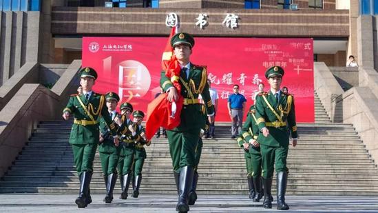 10月1日上午8時(shí),上海電機(jī)學(xué)院400余名師生代表匯聚臨港校區(qū)圖書館會(huì)林廣場(chǎng),升旗儀式在大學(xué)生藝術(shù)團(tuán)演唱的一首《紅旗飄飄》中拉開帷幕。
