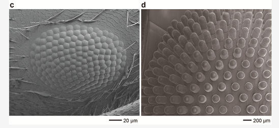 距今五億年前的寒武紀(jì),部分生物已經(jīng)能夠通過簡單結(jié)構(gòu)的復(fù)眼洞察周圍環(huán)境。隨著生物的進(jìn)化,節(jié)肢動(dòng)物的復(fù)眼結(jié)構(gòu)得以不斷完善。自然界中生物復(fù)眼擁有寬廣的視野,以及深度感知的能力,可以通過極大視場(chǎng)角、極小像差,以全景模式觀察周邊的事物。由于復(fù)眼的顯著優(yōu)勢(shì)及特點(diǎn),科研工作者們紛紛提出了多種仿生復(fù)眼的方案。然而,復(fù)眼的生理結(jié)構(gòu)復(fù)雜,難以被簡單仿制;復(fù)眼的三維立體結(jié)構(gòu)無法直接匹配傳統(tǒng)二維圖像傳感器,應(yīng)用上也存在極大的難度。